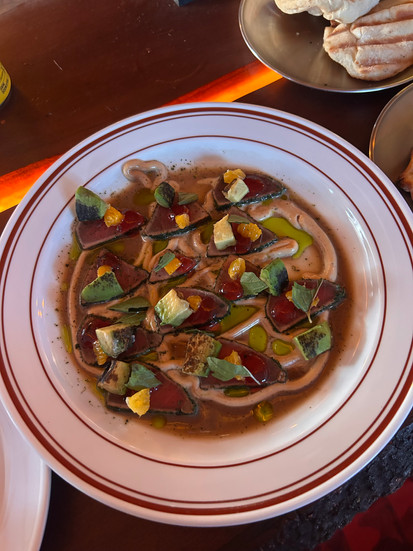 Como buen dueño de casa, Cosmelli recorría las mesas atento a cada detalle. Deben haber sido evidentes nuestras caras de disfrute, porque se acercó a preguntarnos si todo estaba bien. Entre preguntas y felicitaciones, nos contó cómo la merma de la icónica Bacon Jam de Beasty Butcher se transformó en una salsa que causó sensación en su primer local. El éxito fue tal que decidieron replicarla en esta segunda propuesta y, tras pruebas, ensayos y errores, dieron con una salsa de chancaca y miso —nuestra favorita—, que hoy acompaña el Tiradito de atún que coronó la noche.